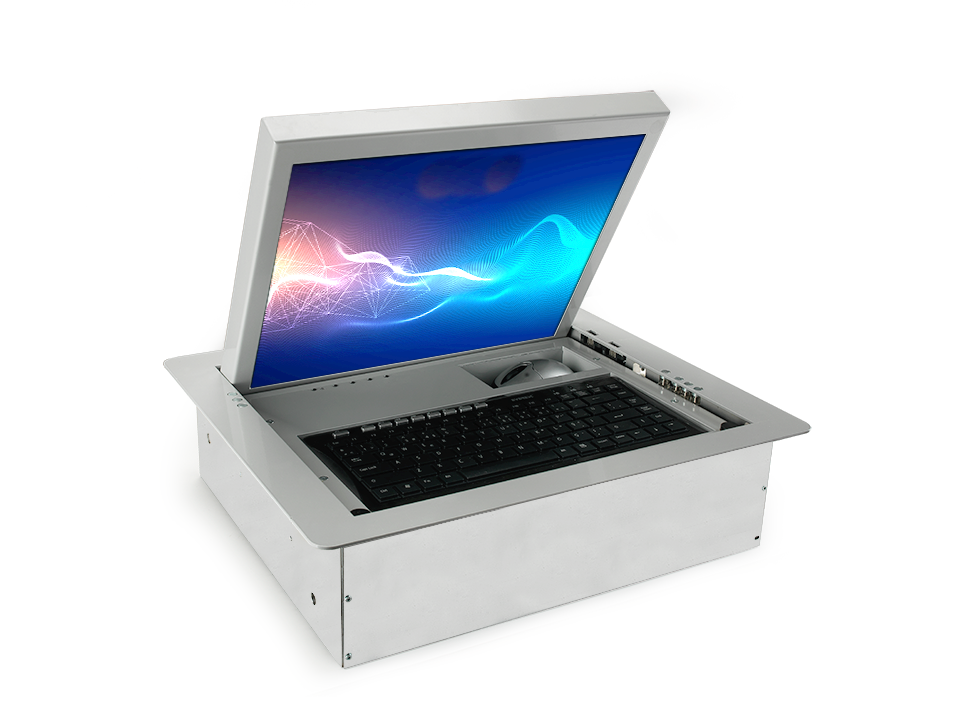 Asansörlü dijital bilgilendirme ekranları şık alüminyum gövdesi, dekoratif görünümü ve isteğe bağlı çoklu dokunmatik özelliğiyle prestijli ortamlarda kullanılmak üzere tasarlanmıştır. Gizlenebilir mekanizması sayesinde ihtiyaç esnasında masa üstüne çıkar, kullanımı bittikten sonra kolayca kapanır.Öne Çıkan Özellikler