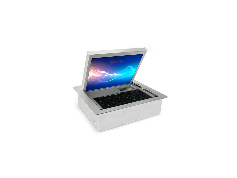Asansörlü dijital bilgilendirme ekranları şık alüminyum gövdesi, dekoratif görünümü ve isteğe bağlı çoklu dokunmatik özelliğiyle prestijli ortamlarda kullanılmak üzere tasarlanmıştır. Gizlenebilir mekanizması sayesinde ihtiyaç esnasında masa üstüne çıkar, kullanımı bittikten sonra kolayca kapanır.Öne Çıkan Özellikler