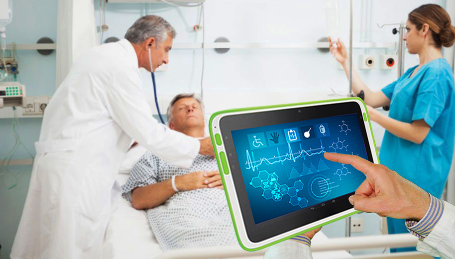 Hastane odalarında, bekleme odalarında veya hemşire istasyonlarında hasta bilgilerini iletmek ve belgelemek için kullanılabilir. Sağlık görevlilerinin ve hemşirelerin hasta kayıtlarına anında erişimi sağlanabilmektedir.