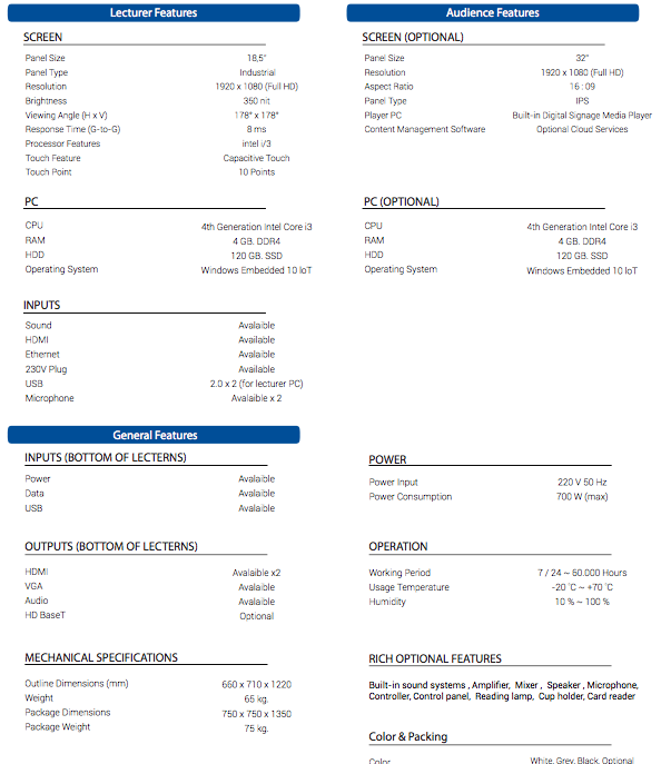 Unisign Dijital Kürsü; konferans salonlarında, eğitim kurumlarında, tanıtımlarda vb. kitlelere hitap edilen tüm ortamlarda profesyonel şekilde konuşma / sunum yapılmasını sağlayan etkili bir kurumsal iletişim aracıdır.Öne Çıkan Özellikler