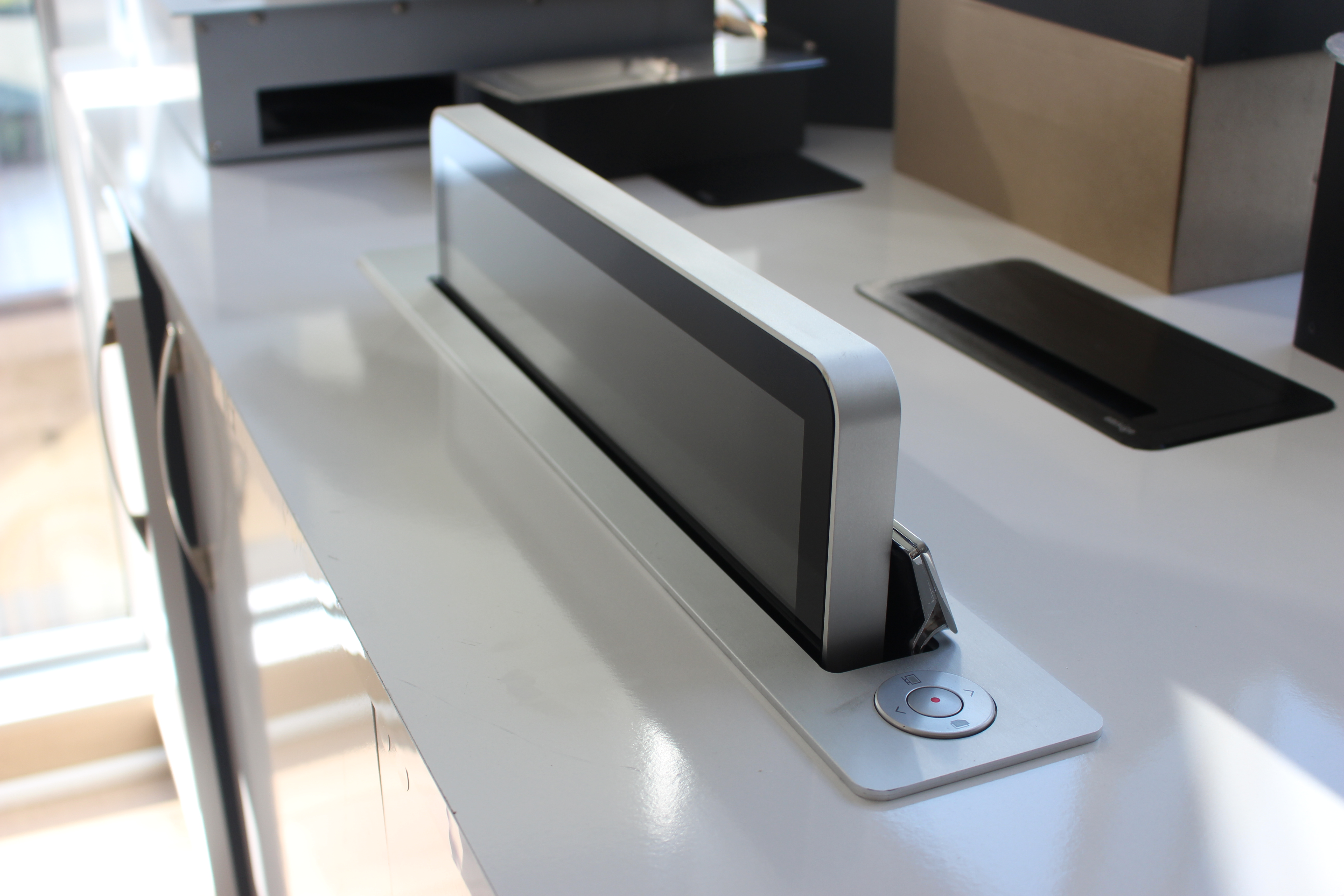 Asansörlü dijital bilgilendirme ekranları şık alüminyum gövdesi, dekoratif görünümü ve isteğe bağlı çoklu dokunmatik özelliğiyle prestijli ortamlarda kullanılmak üzere tasarlanmıştır. Gizlenebilir mekanizması sayesinde ihtiyaç esnasında masa üstüne çıkar, kullanımı bittikten sonra kolayca kapanır.Öne Çıkan Özellikler