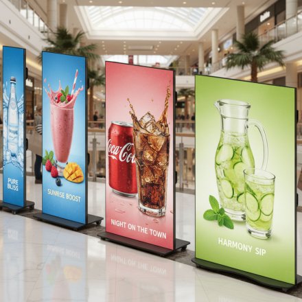 Transform your retail environment with Unisign's LED Poster Totem, the ultimate floor-standing digital signage solution that commands attention and drives customer engagement. Designed with mobility in mind, these sleek totems feature optional castor wheels for effortless repositioning, making them perfect for dynamic retail environments, trade shows, and promotional campaigns. The robust construction ensures stability while maintaining an elegant profile that complements any interior design aesthetic.