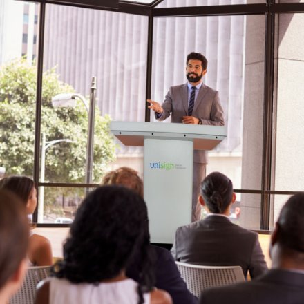 Step into a new era of communication with the Unisign PC201 Digital Podium, where sophisticated design meets powerful functionality. This isn't just a lectern; it's the command center for your most impactful presentations. Crafted for leaders, educators, and innovators who demand excellence, the PC201 transforms any stage into a dynamic and interactive platform. Its striking presence and advanced technology ensure that your message is not only heard but felt, leaving a lasting impression on every member of your audience.