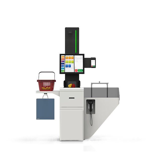 The kiosk’s built-in scale precisely measures fruits, vegetables, and other weighable products, ensuring accurate pricing. This feature not only enhances customer satisfaction but also makes the checkout process more efficient.