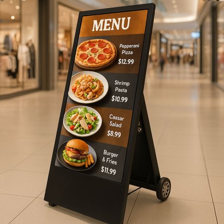 Measuring 940.896(W) × 529.254(H) mm, this totem combines compact design with high durability, making it ideal for outdoor advertising, public information displays, and promotional campaigns.