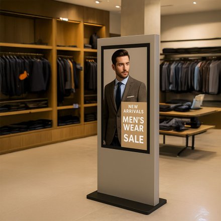 Equipped with high-brightness, commercial-grade displays, the K Model ensures your content pops with rich color, sharp contrast, and ultra-wide 178° viewing angles. Its forward-leaning design and angled lines naturally draw attention—making it ideal for high-visibility indoor locations.