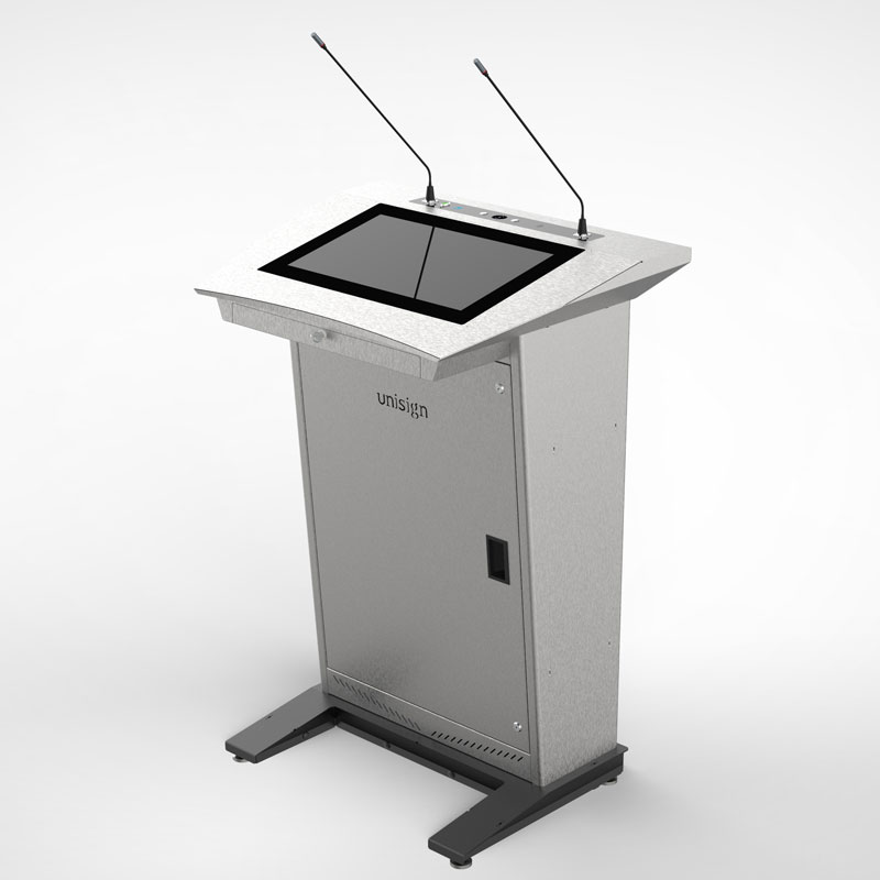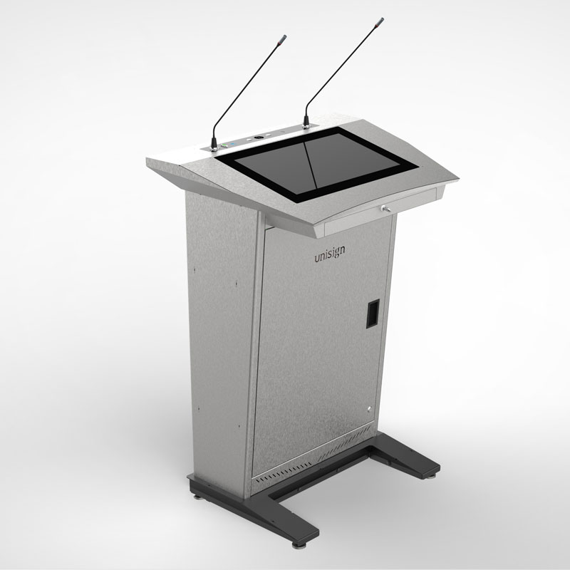 Nefes kesici ekranlarının ötesinde PM501, entegre ve işlevsel tasarımın bir başyapıtıdır. Sunucunun düzenli kalmasını ve kontrolü elinde tutmasını sağlamak için tam bir çalışma istasyonu olarak tasarlanmıştır. Gizli çekmece, uzaktan kumanda ve lazer işaretleyici gibi temel aksesuarları gizlerken kolay erişim sağlar; büyük, kilitlenebilir ana dolap ise tüm çekirdek teknolojiler için güvenli ve merkezi bir alan sunar. Geniş üst yüzey, dizüstü bilgisayar, notlar veya tablet için yeterli ve düzenli alan sağlar, böylece tüm ihtiyaçlarınız elinizin altındadır. Bu akıllı tasarım, isteğe bağlı sessiz çalışan yükseklik ayarlama sistemiyle tamamlanarak her konuşmacı için maksimum konfor ve erişilebilirlik sağlar.